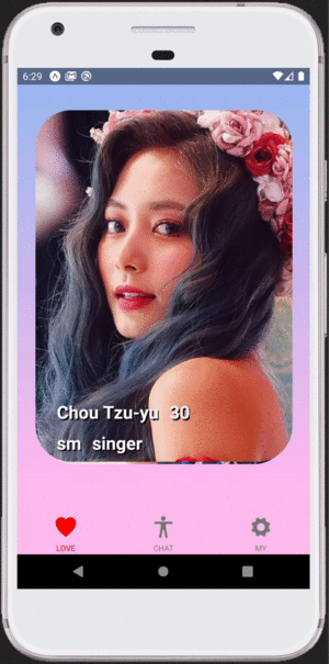 · MainPage 에서 DB data 를 불러와 Card 로 나타내고 , Swipe 기능 구현