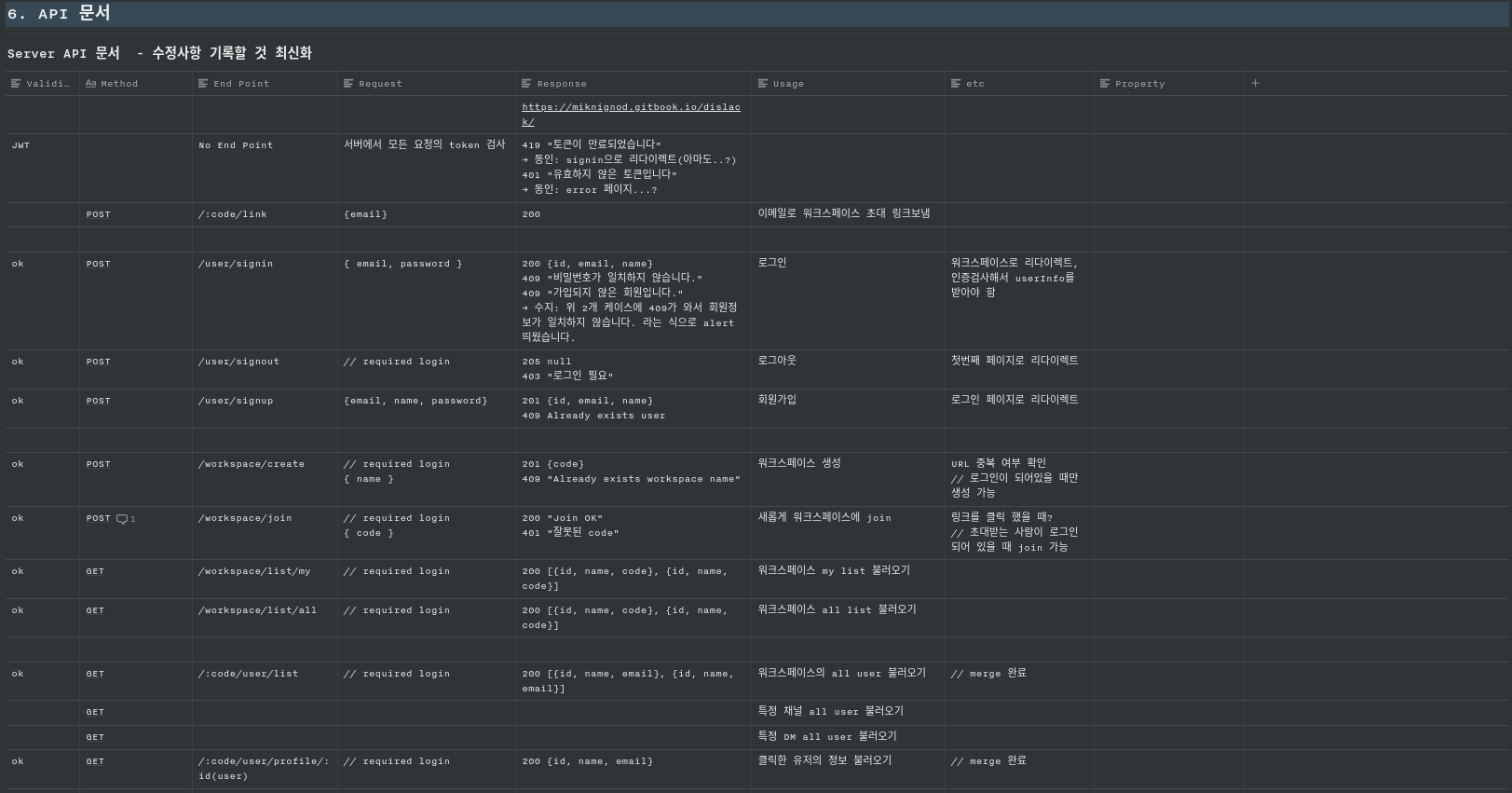 - 노션을 활용하여 API 요청 및 소통도 진행해보았다.